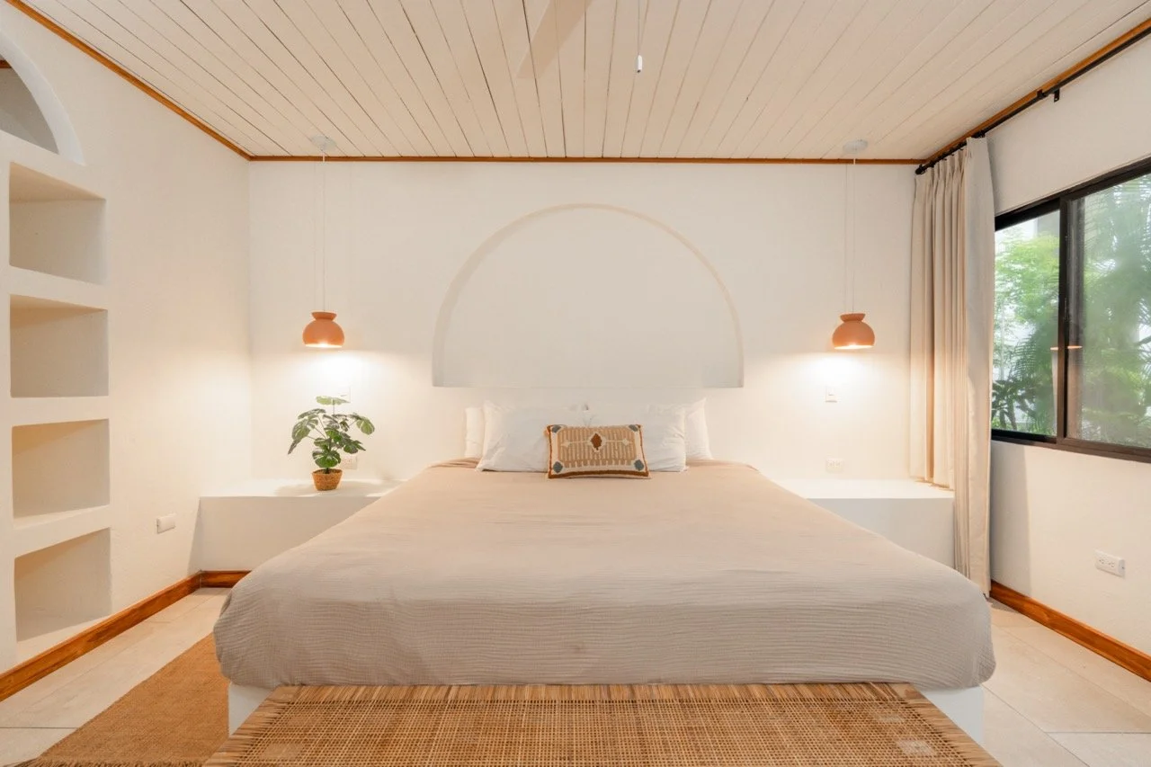 Designed for families or groups seeking comfort and connection, this expansive apartment blends indoor-outdoor living with the tranquil rhythm of Nosara. The space features two serene king bedrooms, each with its own en suite bathroom, plus a cozy loft bedroom with bunk beds and a private en suite — perfect for kids or extra guests.